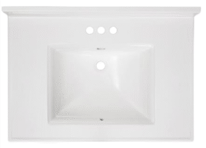 - Solid white marble look that blends easily with any vanity cabinet color or bathroom theme